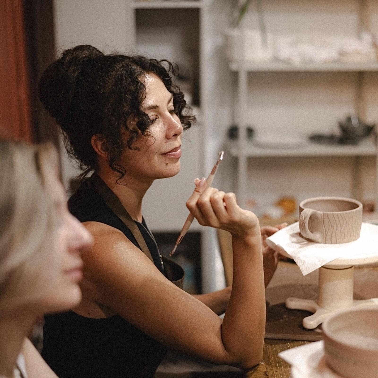 Ознакомим с гончарными кругами. Покажем залы и расположение. Познакомим с мастерами и расскажем о формате.