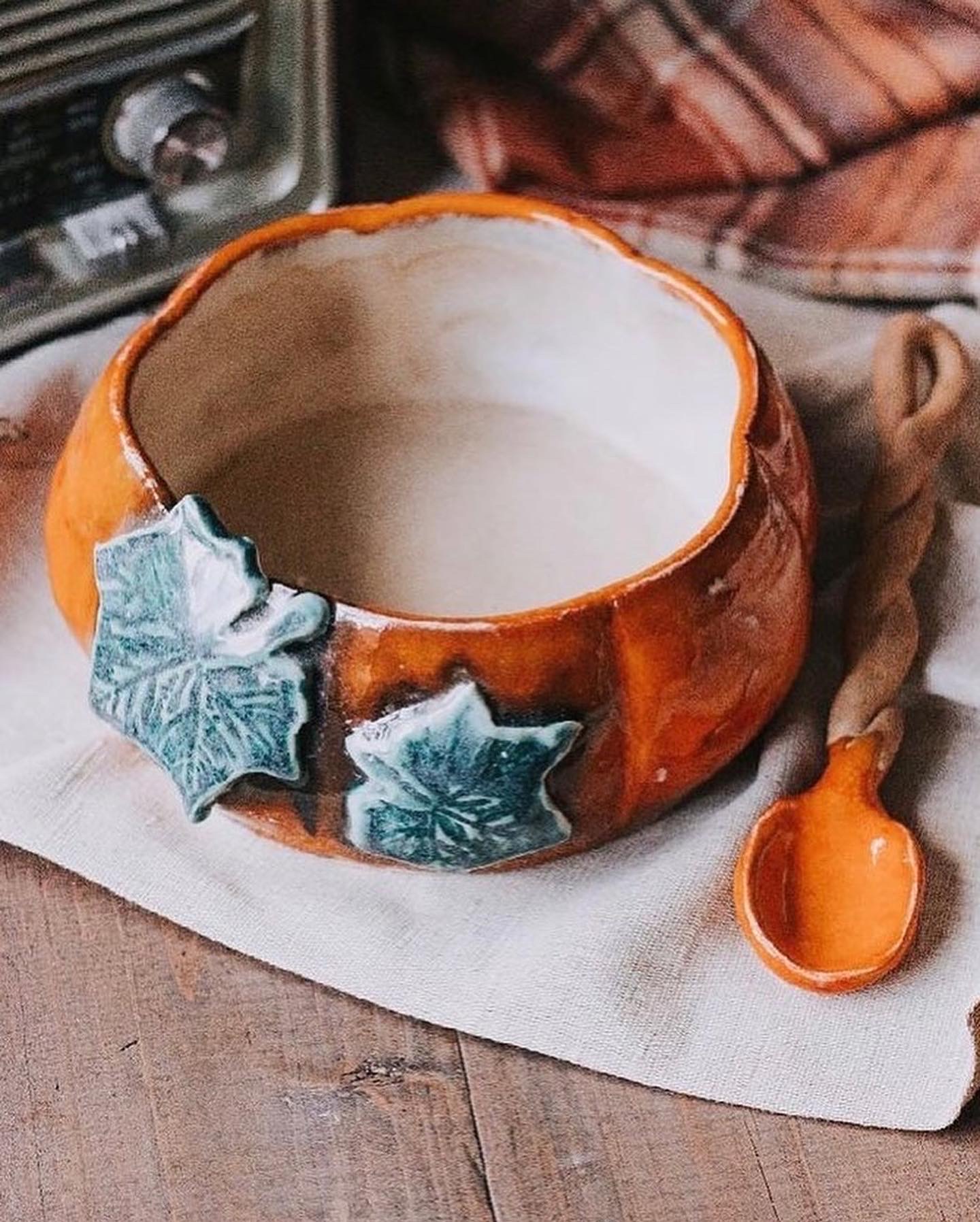 Как правило мы делаем супницу с округлыми бочками, чтобы было максимально похоже на настоящую тыковку, на в целом можно сделать любую форму. Далее за столом мы делаем ручки, придаем мягкие грани основе, все соединяем, подсушиваем и декорируем с помощью стеков и петелек! Ручки, например, можно красиво стилизовать под черенок.